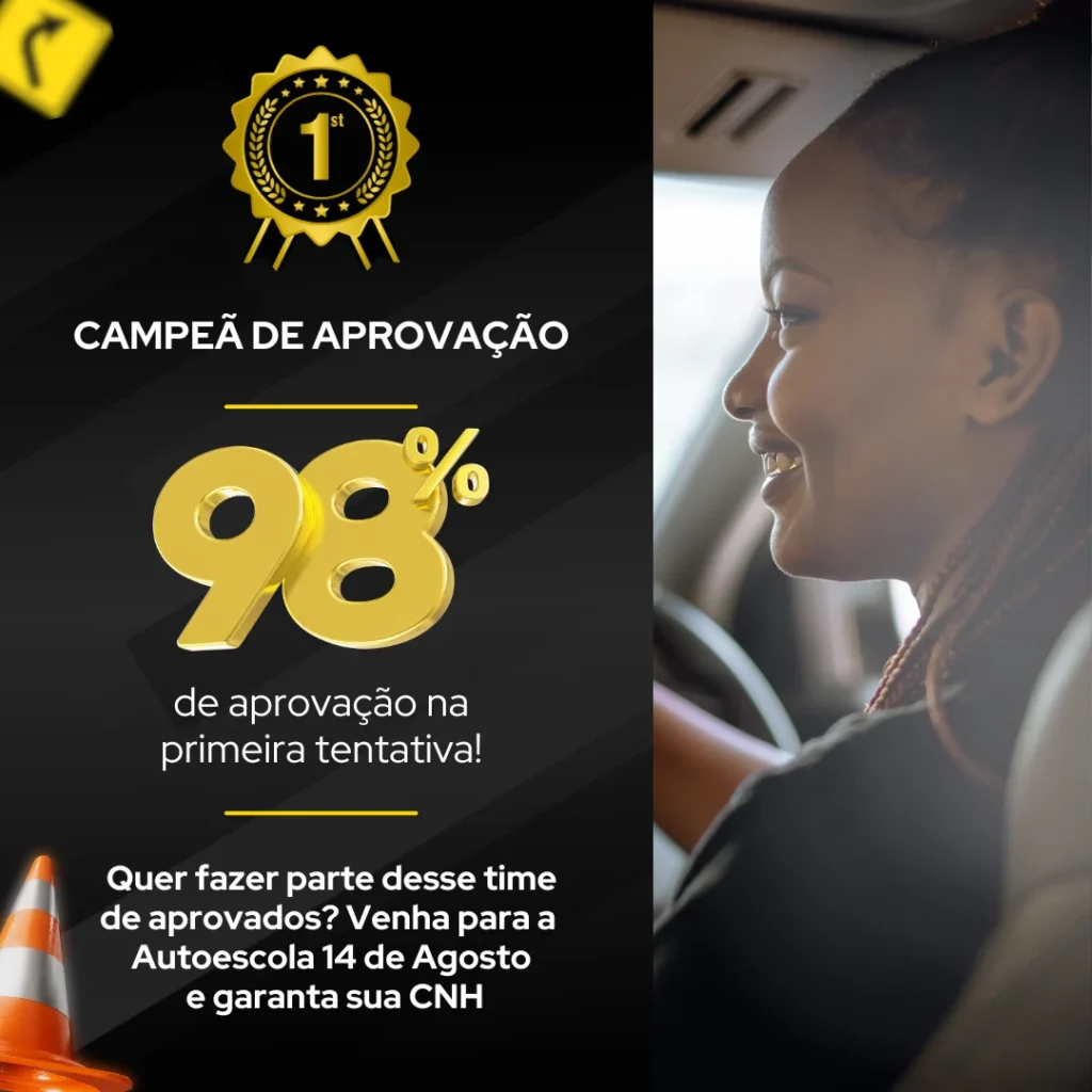 Na Autoescola 14 de Agosto, nosso maior orgulho é ver nossos alunos aprovados no Detran – e fazemos isso com excelência há mais de 50 anos e já são mais de 17 mil alunos aprovados em toda nossa história!